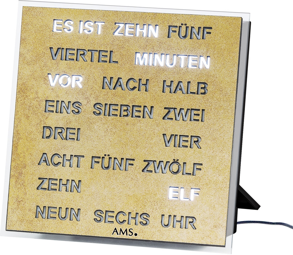 AMS 1238 digitale Tischuhr- Wortuhr 20 x 20 cm